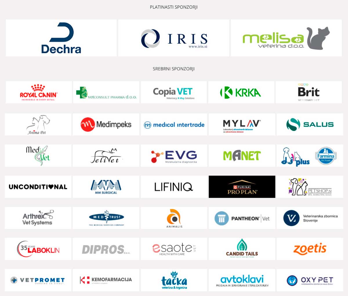 Seznam razstavljavcev: 1 MYLAV SRLU, 2 Royal Canin Ljubljana d.o.o., 3 Medical Intertrade d.o.o., 4 Medimpeks d.o.o., 5 Anima Pet d.o.o., 6 TPR d.o.o., 7 in 8 IRIS, mednarodna trgovina, d.o.o., 9 Lifiniq d.o.o., 10 Candid tails, 11 in 12 VAFO PRAHA, s.ro., 13 EVG, molekularna diagnostika, d.o.o., 14 Unconditional d.o.o., 15 in 16 Vetconsult pharma d.o.o., 17 Manet d.o.o., 18 in 19 Melisa Veterina d.o.o., 20, 21 in 22 Dechra, 23 Salus veletrgovina d.o.o., 24 Zoetis, 25 Felivet d.o.o., 26 KRKA d.d., 27 DJ Plus d.o.o., 28 MM Surgical d.o.o., 29 BTL marketing d.o.o., 30 Arthrex Adria d.o.o., 31 in 32 Copia biro d.o.o., 33 Avtoklavi, Kramer Franci s.p., 34 Med Trust d.o.o., 35 Mideas d.o.o. (ESAOTE) 36 Datalab SI d.o.o., 37 Dipros d.o.o., 38 Laboklin GmbH & Co., 39 Animalis d.o.o.